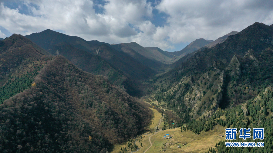海東市互助土族自治縣北山國家森林地質(zhì)公園扎龍溝秋景(無人機照片)。新華社記者 張宏祥 攝