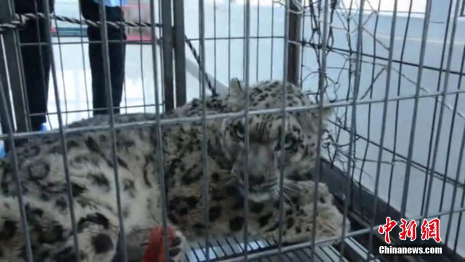 日前,青海玉樹藏族自治州玉樹市下拉秀鎮(zhèn)白瑪村生態(tài)管護員在巡山途中發(fā)現(xiàn)一只受傷的國家一級保護動物雪豹,雪豹雙后腿均有傷痕且無法站立。目前,受傷雪豹被運送至青海野生動物救護中心進行救治。