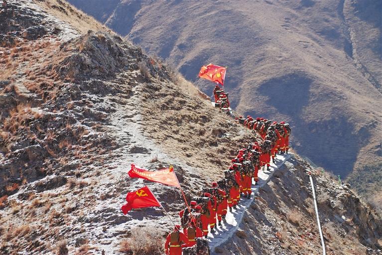 圖為西藏森林消防總隊特種救援大隊行進在訓(xùn)練途中。 記者 王杰學(xué) 通訊員 李斯 攝