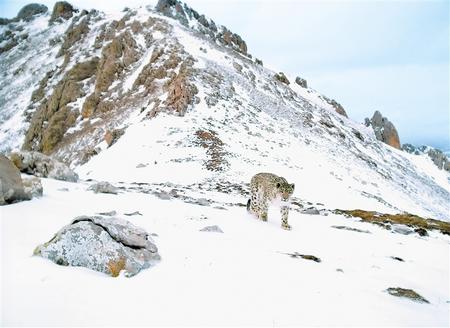 紅外線相機(jī)監(jiān)測到的國家一級保護(hù)動物雪豹。(甘南州生態(tài)環(huán)境局供圖)