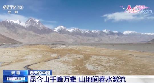 立春后,新疆境內(nèi)的昆侖山山色黑白相交,更加雄渾有力,藍(lán)天、白云、雪山構(gòu)成了一幅壯美的畫卷。和高山的積雪不同,山下的冰河融化、春水激流,野生牦牛等動(dòng)物聚集在河邊暢飲、吃草,彰顯出春天的勃勃生機(jī)。