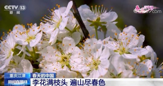 跟隨鏡頭,我們來(lái)到重慶江津區(qū)黑灘村,這里的千畝李花正開滿枝頭?;ㄈ餇?zhēng)相生長(zhǎng),花瓣盡情舒展,遠(yuǎn)觀如滿樹雪霜,近賞又清新淡雅。漫山春花芬芳動(dòng)人,吸引游客紛至沓來(lái)。