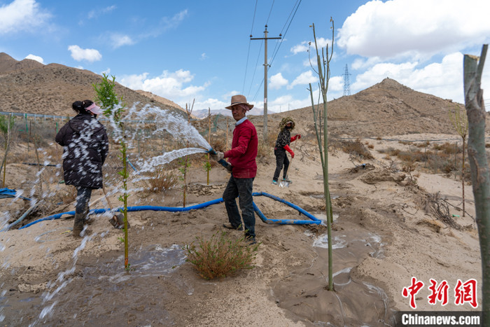 他說,雅魯藏布江兩岸的沙地多是流動沙,沙土沒有樹木生長所需的營養(yǎng),種樹前先要填生物肥、秸稈等。此外,樹苗還面臨夏季沙地溫度過高以及水源缺乏等問題。“雖然地處江邊,但種樹點離河道有五六公里甚至更遠?!泵侠麞|說,他們篩選、馴化本地植物作為種苗,澆灌水源采取就地打井的方式取水,在沙地上植樹造林。