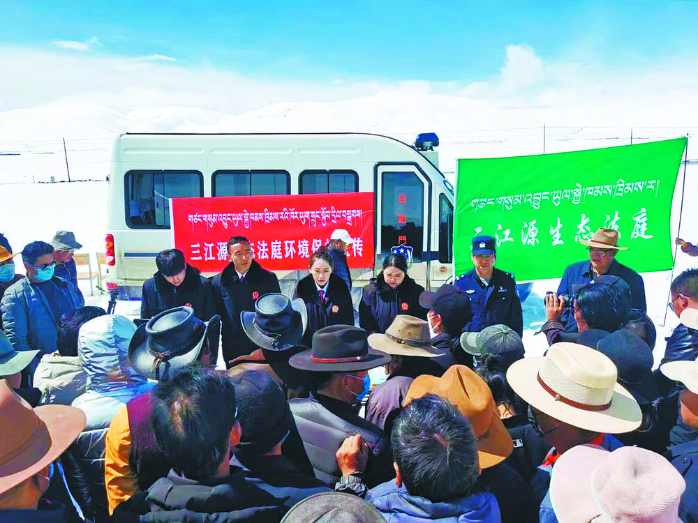 三江源生態(tài)法庭開展“送法下鄉(xiāng)”活動。三江源生態(tài)法庭供圖 記者 張子涵 程宦寧
