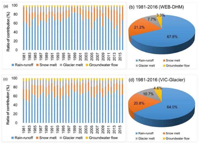 王磊表示,依托監(jiān)測網(wǎng)絡(luò)和其他多源數(shù)據(jù),研究團隊生成了1981-2019年這38年內(nèi)雅魯藏布江流域高時空分辨率降水?dāng)?shù)據(jù),在此基礎(chǔ)上進(jìn)一步通過對比、綜合主流冰凍圈水文模型的徑流組分模擬,研究得出的結(jié)果顯示,雅魯藏布江流域(奴下水文站以上)新的降雨、融雪、冰川融化和地下水補給分別占總徑流的66%、21%、9%和4%。