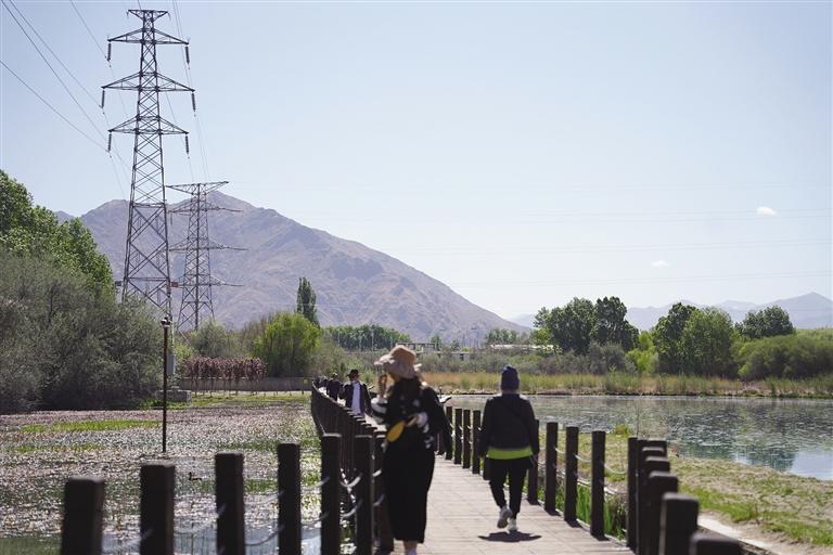 5月初,拉魯濕地里的花草樹木從春天的泛綠到初夏的翠綠,成為了拉魯濕地的一番美景。市民和游客步行其間,呼吸著充足的氧氣,邁著輕快而有力的步伐,沿著拉魯濕地步道前行,時(shí)而駐足觀望沿途美景,時(shí)而聚集一方合影留念,不僅鍛煉了身體,又領(lǐng)略了自然風(fēng)光,在盡情感受生態(tài)之美的同時(shí),也讓身心得到放松。