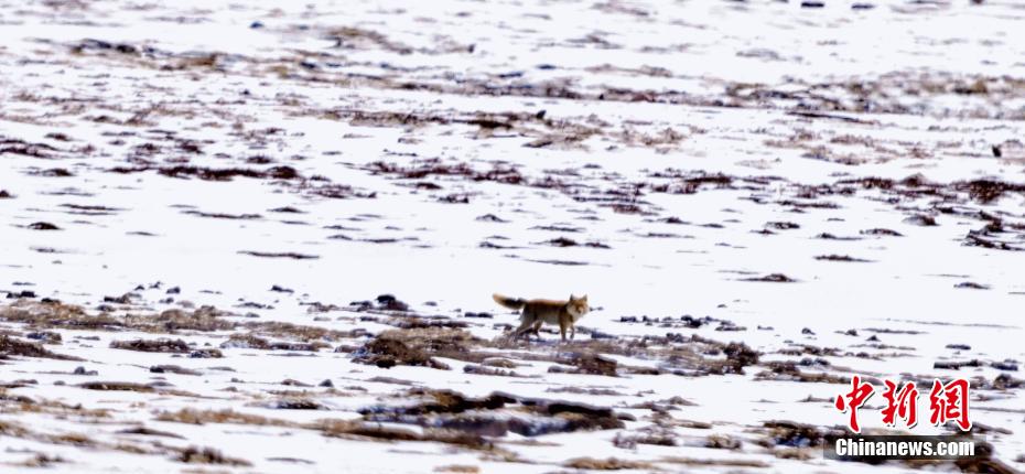 黑頸鶴、藏原羚、斑頭雁、藏狐、巖羊等野生動物嬉戲、覓食、跳躍、奔跑……貌似夏天到了,它們也喜歡“組團(tuán)”游玩,感受這高原的夏日活力。圖為藏狐在遠(yuǎn)處回眸。 馬志原 攝