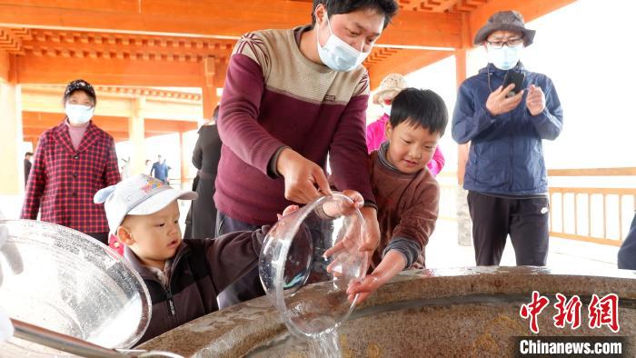 圖為民眾增殖放流青海湖裸鯉?!±铍h 攝