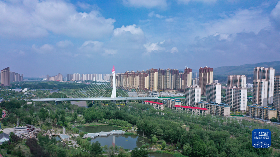 這是6月4日在青海省西寧市拍攝的一處濕地公園(無(wú)人機(jī)照片)。新華社記者 張龍 攝