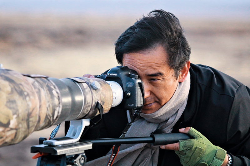 夕陽西下,大風(fēng)肆虐。49歲的才項南加系上圍巾趕忙下車,從后備箱包裹嚴實的毛毯里拿出相機和三腳架,稍做調(diào)試后,便扛著裝備三步并作兩步地趕往200米外的一片濕地?!摆s緊去看看,兩只黑頸鶴在喝水呢!”他說。