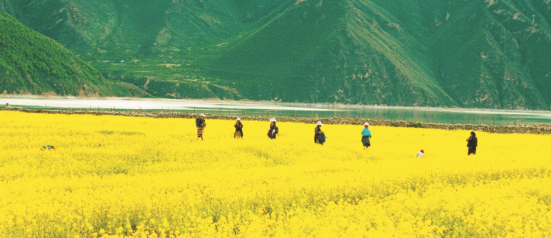 圖為墨竹工卡縣尼瑪江熱鄉(xiāng)幫達(dá)村村民在油菜田間勞作。西藏日?qǐng)?bào)記者 旦增蘭澤攝