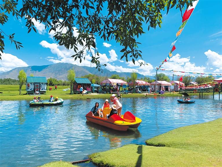 時(shí)下,正是“過林卡”的最好時(shí)節(jié),為了吸引客源、招攬生意,林卡經(jīng)營者不斷完善基礎(chǔ)設(shè)施,搭建漂亮的帳篷,提供特色服務(wù),滿足市民游客戲水、劃船、健身運(yùn)動(dòng)和特色美食等需求。