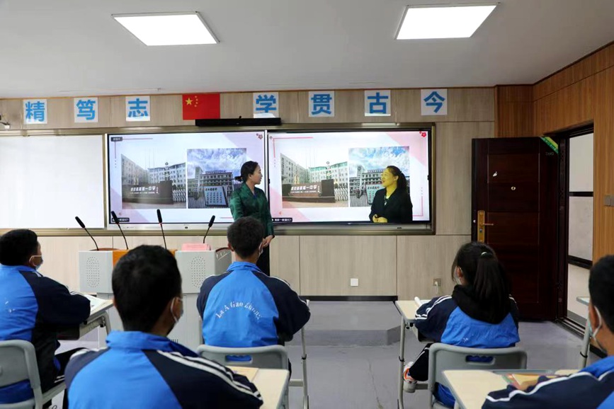 通過“云教室”,陜西、西藏阿里同上民族團結教育課。人民網 李海霞攝