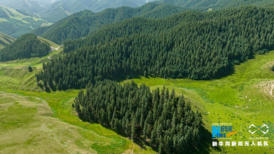 初秋時節(jié),甘肅省張掖市肅南裕固族自治縣馬蹄藏族鄉(xiāng)境內(nèi),祁連山延綿不斷,林海蒼翠茂密,勾勒出絢麗多姿的迷人景觀。新華網(wǎng)發(fā)(成林 攝)
