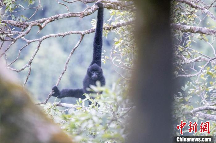 圖為景東縣觀測(cè)到的西黑冠長(zhǎng)臂猿。 唐云 攝