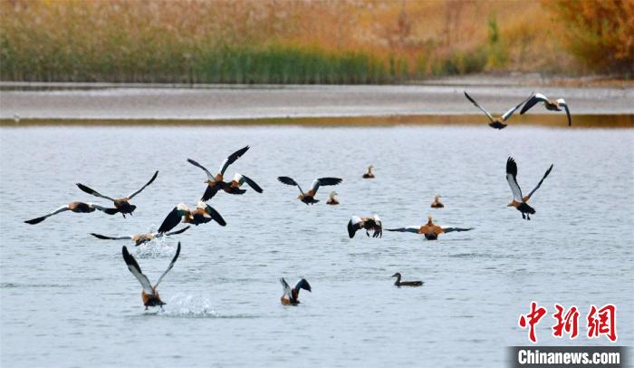 圖為10月底,甘肅敦煌黨河濕地成群野生鳥類翩翩飛舞?!⊥醣筱y 攝