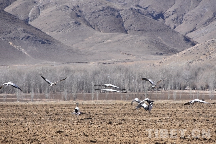 中國西藏網(wǎng)訊 地處雅魯藏布江中游河谷地帶的西藏自治區(qū)拉薩市林周縣,被稱為拉薩“糧倉”。每年的冬季,林周縣虎頭山水庫因兩面夾山,周邊有大片的良田,成為黑頸鶴覓食、夜棲的佳地。