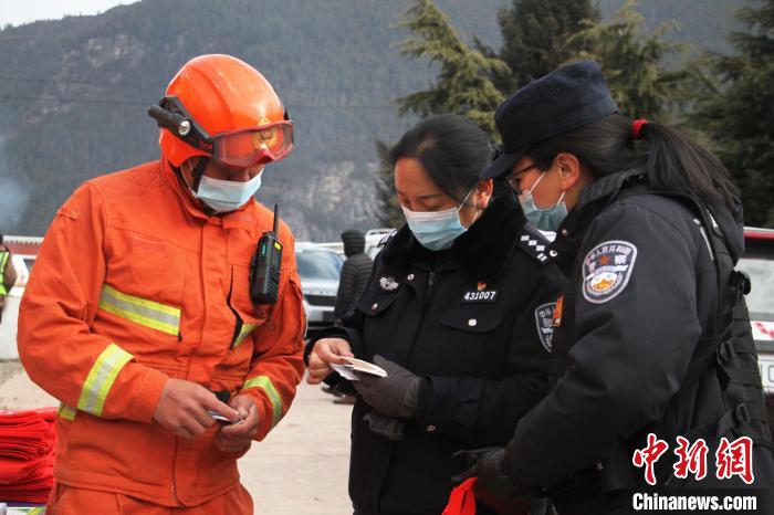 圖為森林消防隊員開展防火宣傳活動現(xiàn)場?!×种ナ猩窒乐ш牎z