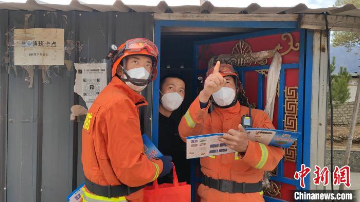 圖為森林消防員在景區(qū)重點(diǎn)區(qū)域普及防火知識(shí)。 林芝市森林消防供圖