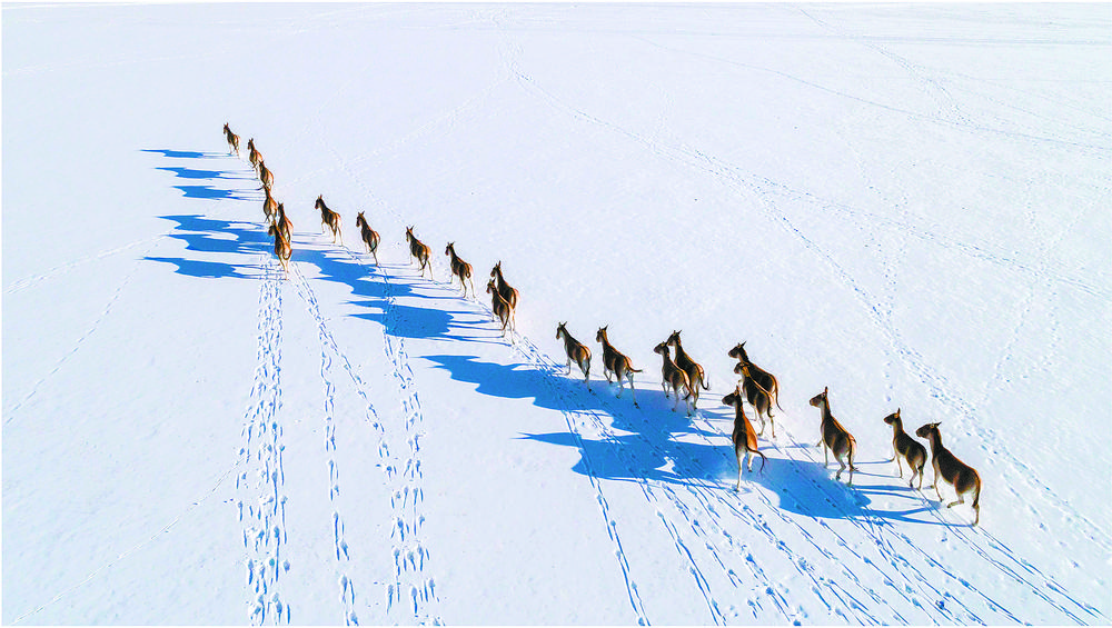 “雖然天寒地凍,但對那些夏秋季節(jié)進不去的濕地草灘來說,卻是巡護的好時機?!睆男≡邳S河源頭長大,尼格對生態(tài)有著深刻體會?!靶r候黃河源頭生態(tài)環(huán)境惡化,草場退化,我們家要到2公里外的河流去找水。”