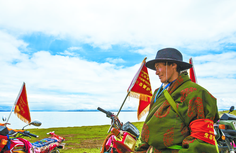 作為三江源國家公園的一名生態(tài)管護員,尼瑪扎西每天在放牧自家牛羊的同時,也承擔(dān)撿拾垃圾、巡護湖泊草場、巡查和保護野生動物等職責(zé)。