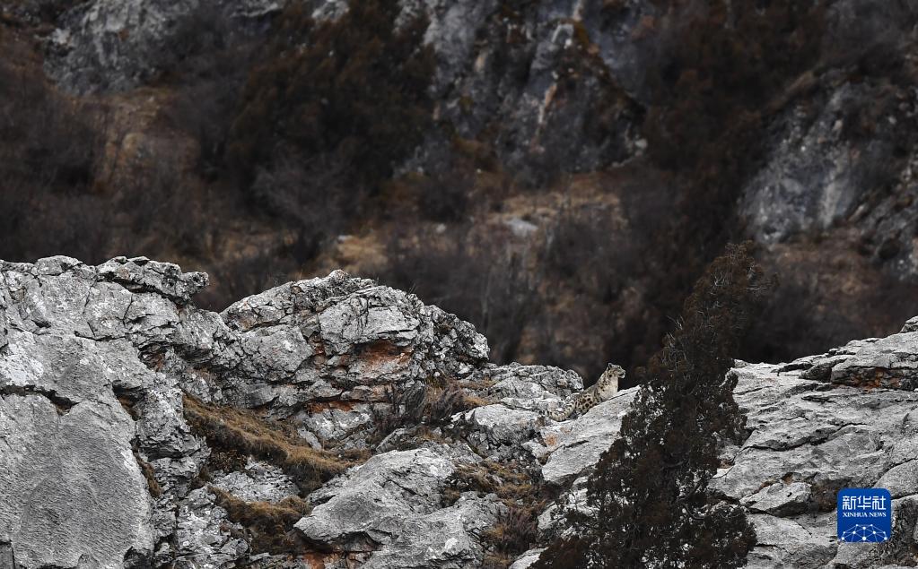 2月21日,在青海省玉樹藏族自治州雜多縣昂賽鄉(xiāng)境內的昂賽大峽谷內,一只雪豹正在活動。新華社記者 張宏祥 攝