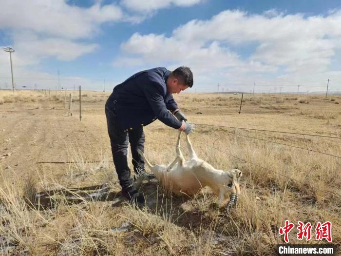 據(jù)介紹,3月12日11時(shí)許,青藏集團(tuán)公司西寧電務(wù)段哈爾蓋信號(hào)車間哈爾蓋信號(hào)工區(qū)的3名職工在徒步前往管內(nèi)那仁中繼站檢修信號(hào)設(shè)備途中發(fā)現(xiàn),有動(dòng)物掛在網(wǎng)圍欄,無(wú)法掙脫。