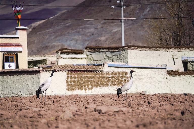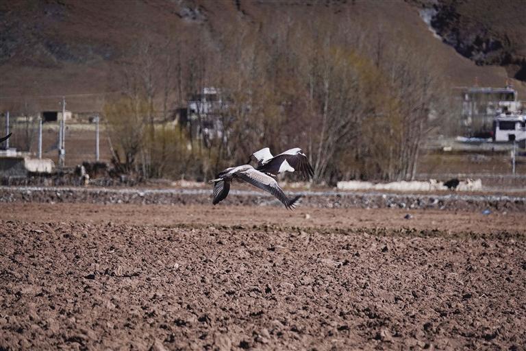 黑頸鶴是國家一級保護(hù)動物,在藏語中稱為“沖沖”。主要棲息在海拔2500米至5000米的高原、草甸、沼澤地帶。拉薩北部的林周縣平均海拔約4200米,是黑頸鶴的主要越冬地之一。最近這段時間,對拉薩市林周縣野保員們來說,一邊要忙自家的農(nóng)活,一邊還要巡查候鳥情況?!耙呀?jīng)有一小部分飛走了,估計再過半個月都會陸續(xù)飛走?!?月23日上午,野保員旦增告訴記者,在虎頭山水庫和卡孜水庫越冬的候鳥有一部分已經(jīng)飛走了。野保員口中的“飛走”便是遷徙,遷徙是候鳥的本能,一年一年,跟隨時間的召喚,完成兩次遷徙:繁殖和越冬。