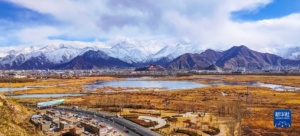 越過拉魯濕地眺望布達拉宮(2023年2月24日攝)。新華社記者沈虹冰 攝