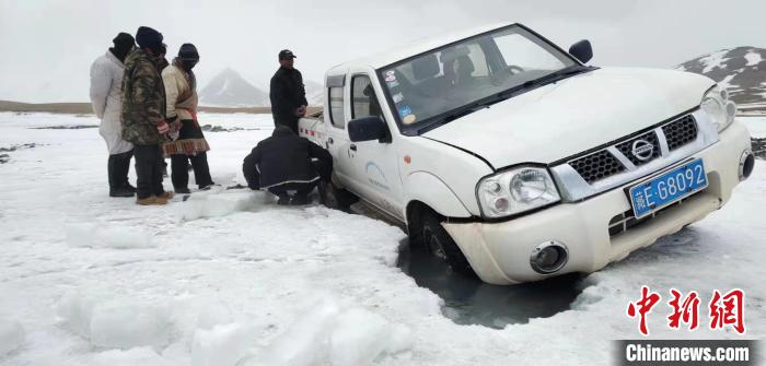圖為巡護(hù)車輛陷車。 謝昆軍供圖