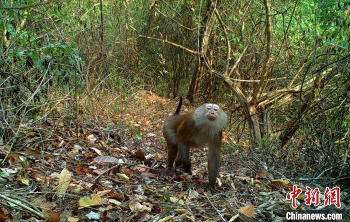 圖為紅外線相機(jī)拍攝的北豚尾猴影像 保山市龍陵小黑山省級自然保護(hù)區(qū)管護(hù)局供圖