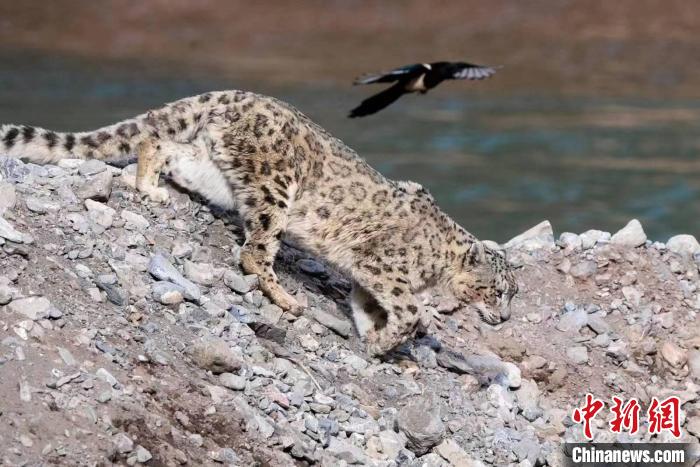 資料圖為攝影師在雜多縣境內(nèi)拍攝的雪豹。雜多縣委宣傳部供圖