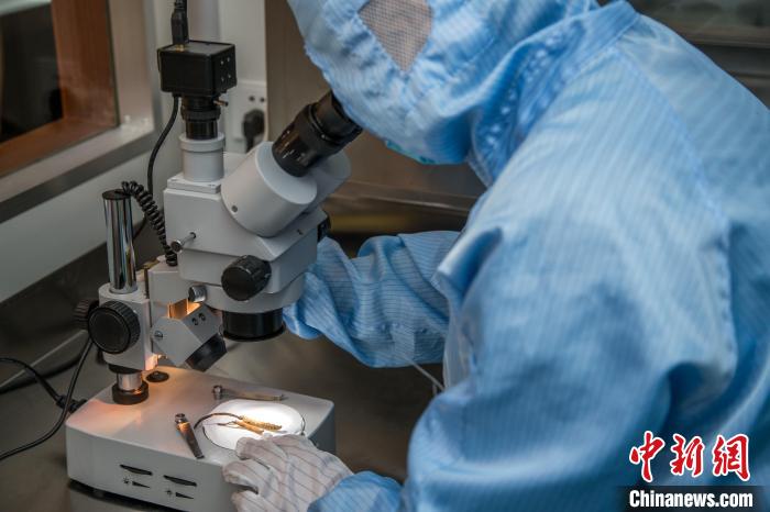 圖為科研人員對培育的冬蟲夏草進行研究。(資料圖) 陳超 供圖