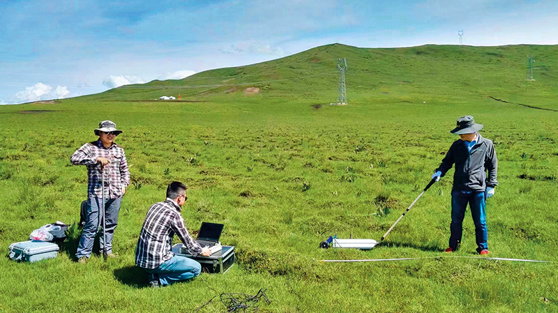中國(guó)科學(xué)院成都生物研究所的科研團(tuán)隊(duì)在若爾蓋濕地開展野外研究。受訪者供圖