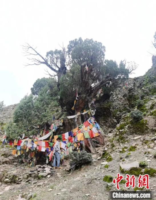 2023年8月,在西藏日喀則市昂仁縣一處海拔4260米的地方,張齊兵與團(tuán)隊(duì)發(fā)現(xiàn)一棵大果圓柏千年古樹。受訪者供圖