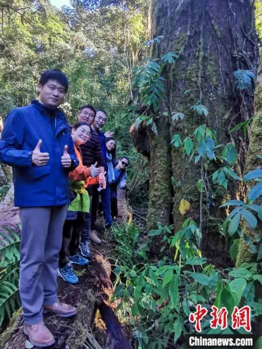 2023年12月22日,研究機(jī)構(gòu)、高校專家學(xué)者等在西藏墨脫縣“墨脫樹王”辛達(dá)布周邊考察調(diào)研,并與樹王合影。李攀 攝