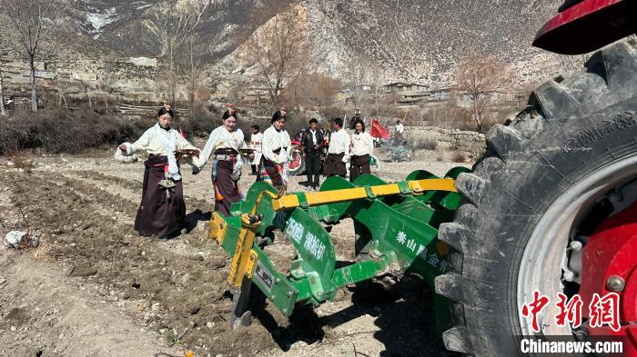 圖為身著盛裝的村民們開啟春耕。次仁頓珠 攝
