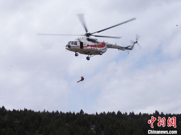 圖為拉練中直升機(jī)滑降訓(xùn)練。西藏林芝市森林消防支隊供圖