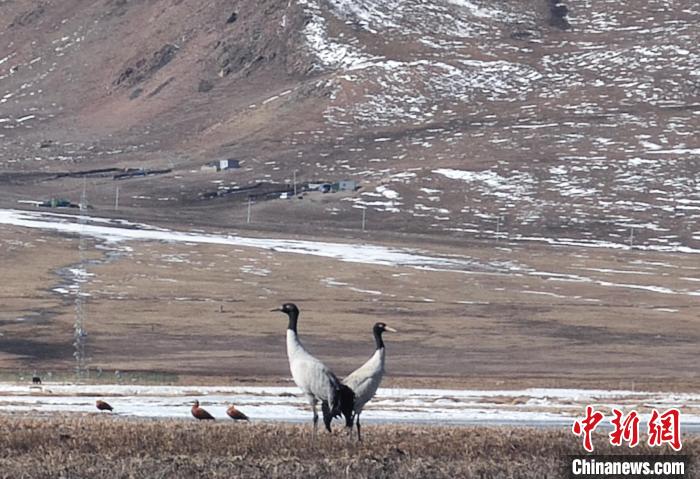 25日,今年首批黑頸鶴如約來(lái)到青海玉樹(shù)藏族自治州隆寶灘國(guó)際重要濕地。