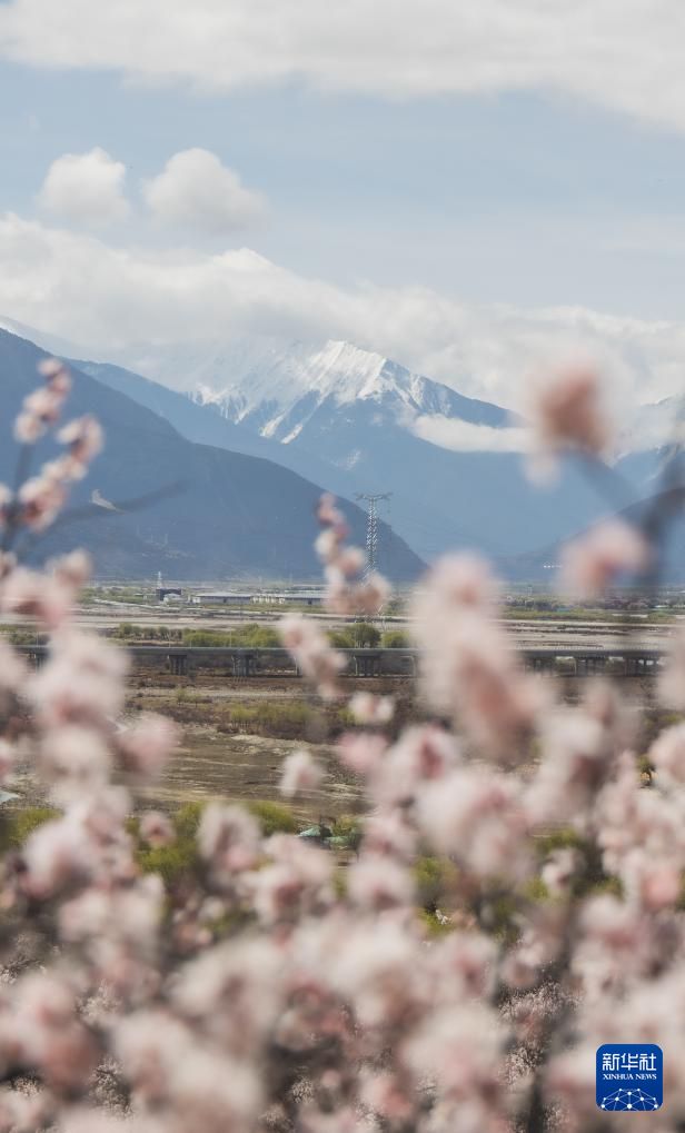 燦若云霞的桃花和潔白無瑕的雪山交織成一幅獨特的雪域高原美景(3月30日攝)。新華社記者 丁增尼達(dá) 攝
