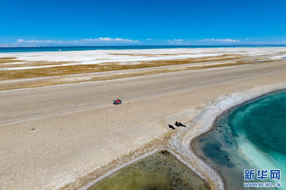 4月14日,野保員在色林錯國家級自然保護區(qū)進行日常巡邏(無人機照片)。新華網(wǎng) 旦增努布 攝