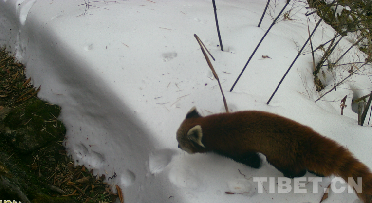 此外,紅外相機精準(zhǔn)拍到了一只赤麂(國家重點保護(hù)野生動物名錄二級)正穿梭叢林的畫面,它臉部較狹長,額部V字形黑紋特別明顯,四肢細(xì)長,額頂?shù)南鄳?yīng)部位微有突起,并有成束的黑毛。在不同的地點還拍到了喜馬拉雅小熊貓(國家重點保護(hù)野生動物名錄二級)的覓食畫面。
