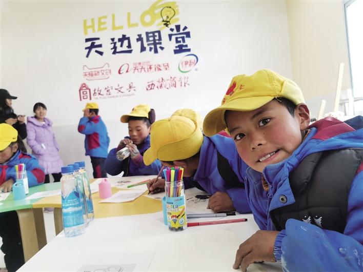 2019年8月,當(dāng)孩子們迎來(lái)新的一學(xué)期,天貓、人民日?qǐng)?bào)和故宮聯(lián)合宣布,故宮文具上線(xiàn)天貓。為了給孩子們一份特別的禮物,天貓新文創(chuàng)、阿里巴巴天天正能量、伊利、故宮文具、西藏商報(bào)聯(lián)合發(fā)起“天邊課堂”公益項(xiàng)目,為西藏一所村小改造一間海拔最高的“天邊課堂”教室,為孩子們送上故宮文具,設(shè)計(jì)形式多樣的美育課程,助力鄉(xiāng)村孩子在開(kāi)學(xué)伊始揚(yáng)帆起航,開(kāi)啟新學(xué)期新體驗(yàn)。