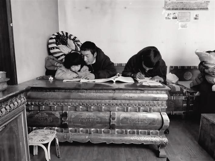 次仁羅布到縣里讀小學(xué)時(shí),父母賣(mài)掉了村里的房子,陪他一起去了縣城,為了節(jié)省一點(diǎn)開(kāi)支,將次仁羅布的弟弟和外甥女留在叔叔家中。到了縣城以后,他們租了一間只能容下三個(gè)人的小房子,就這樣父母陪他度過(guò)了一年的學(xué)習(xí)生活。為了改善家庭的經(jīng)濟(jì)狀況,父母也開(kāi)始到各個(gè)地方擺攤做起了小生意,到處奔波了六年,才在縣城里蓋了一個(gè)小木房。