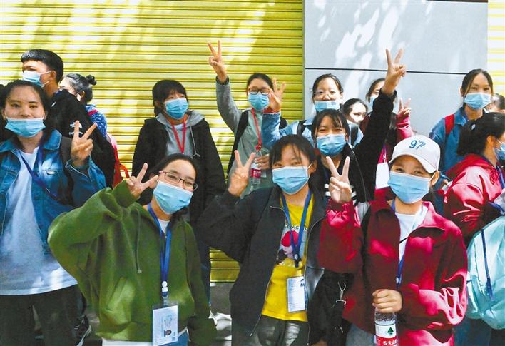 圖為7日上午,首場(chǎng)考試結(jié)束,考生走出考場(chǎng),為自己加油。記者 李洲 洛桑 次旺 唐斌 攝影報(bào)道