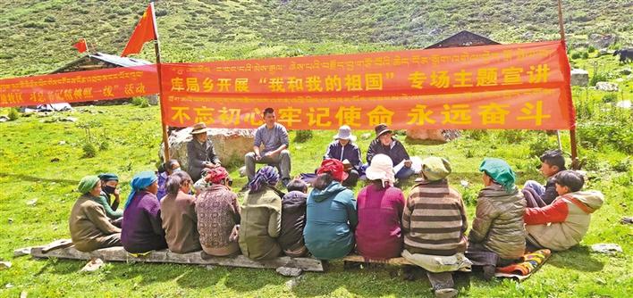 圖為庫局鄉(xiāng)黨委組織干部職工下沉邊境一線對農(nóng)牧民黨員開展宣講教育。西藏日報通訊員 李蒙 攝