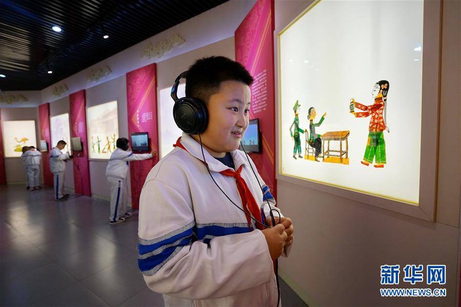 10月19日,小學(xué)生們在中國灤州皮影博物館內(nèi)參觀一幅皮影長卷。 今年以來,河北省灤州市橫渠實(shí)驗(yàn)小學(xué)成立皮影興趣社團(tuán),在當(dāng)?shù)氐闹袊鵀粗萜び安┪镳^開設(shè)校外課堂,組織學(xué)生定期參觀、學(xué)習(xí),增強(qiáng)學(xué)生對傳統(tǒng)文化的了解。
