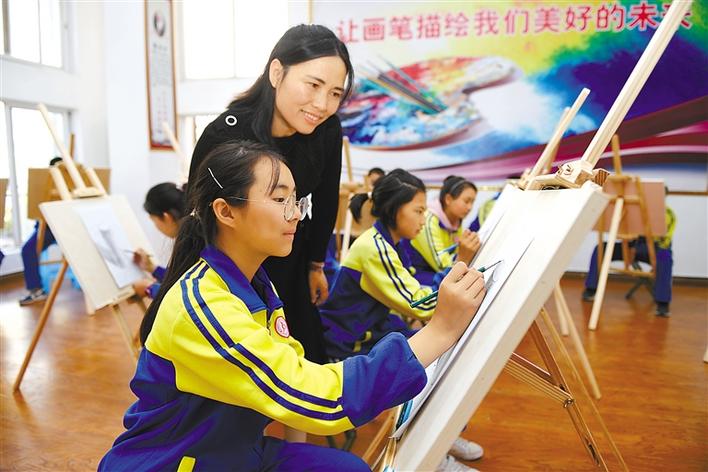 圖為昌都市卡若區(qū)第二初級(jí)中學(xué)的老師指導(dǎo)學(xué)生素描。丹增群培 攝
