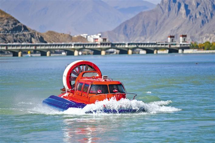 啟動儀式現(xiàn)場的水陸兩棲氣墊船。