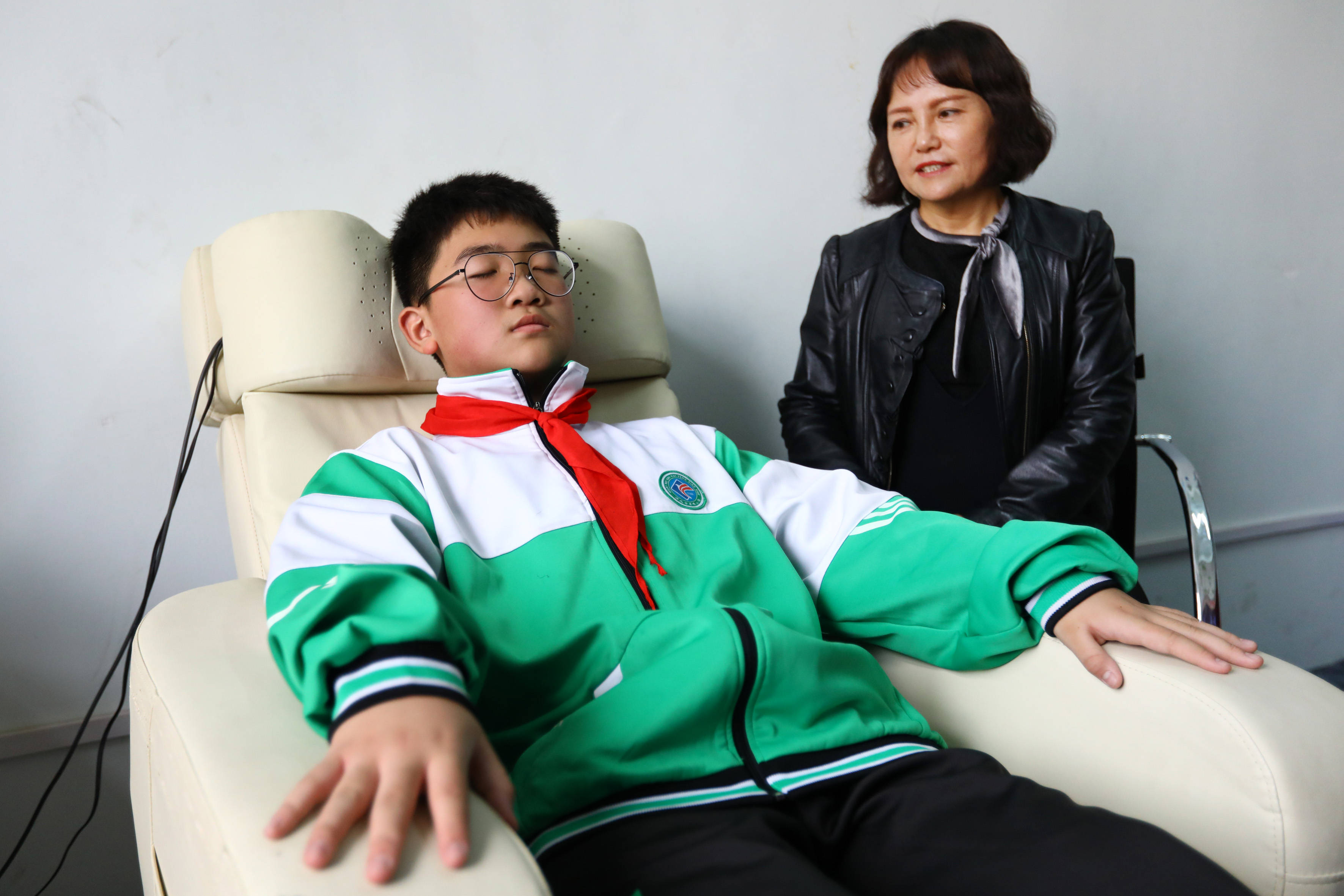 11月15日,淮北市的小學(xué)生在相山區(qū)未成年人心理健康輔導(dǎo)站音樂(lè)室聽(tīng)音樂(lè)放松身心。